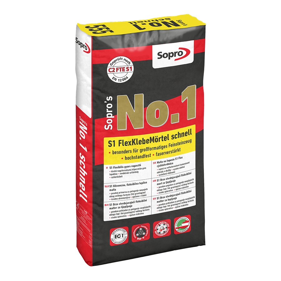 Cementové, šedé, rychle tvrdnoucí flexibilní lepidlo , C2 FTE S1 podle normy EN 12004 pro přípravu a kladení keramických obkladů a dlaždic. Ideální pro kladení velkoformátových dlažeb (do 300 x 100 cm!, jen v interiéru), is rektifikovanými okraji. Mimořádně vhodné pro jemnou kameninu. Vhodné pro stěny a podlahy, pro vyhřívané podklady a pro kompozitní izolace.
