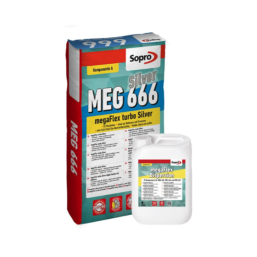 Dvousložková , cementová, vysoce flexibilní, stříbrna, rýchloschnoucí , vodotěsná (testovaná dle PG-AIV-F) malta na tekuté lůžko, C2 FE S2 dle normy EN 12 004, pro mimořádně bezpečné kladení dlažby z jemného kameniva, betonu a opracovaného kamene. Na čerstvých, nevyhřívaných cementových potěrech (obkladačky a dlaždice o délce hrany ≤ 60 cm) 1), jakož i podlahovém topení díky účinku matice malty snižujícímu napětí. Ideální na balkony a terasy . Velmi vysoká odolnost vůči zmýdelňování a flexibilita. Vysoká a trvalá mrazuvzdornost díky velmi nízké absorpci vody a vodotěsnosti. V systému schváleny pro použití při stavbě lodí.