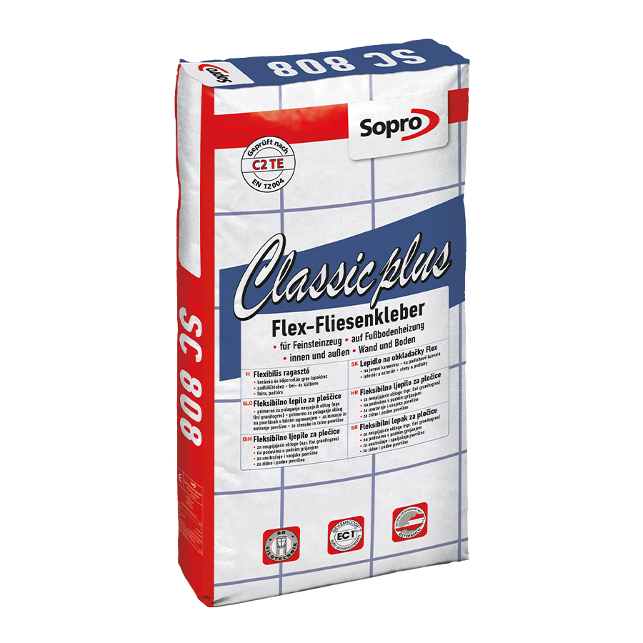 Cementové flexibilní lepidlo na dlaždice , C2 TE podle EN 12 004, s dobrými vlastnostmi při zpracování a vysokou odolností, pro pokládání a lepení keramických dlaždic a desek, jemné kameniny, jakož i barevně stálého přírodního kamene. Vhodné pro podlahové topení a kompozitní izolace.
